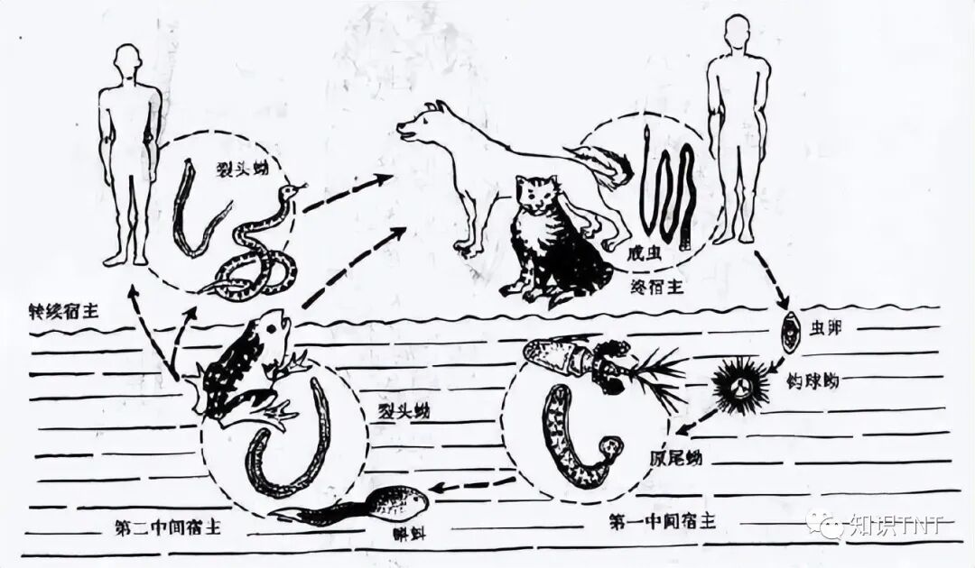 裂头蚴学名为曼氏迭宫绦虫裂头蚴,是一种寄生虫。成虫为白色,可生长到60~100厘米长,幼虫多寄生在剑水蚤、蛙类、蛇等动物身上,而成虫则多寄生在猫、狗等食肉动物的肠道内。