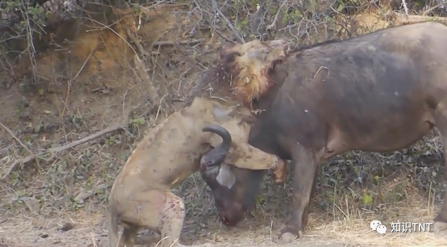 这场战斗持续了一个多小时,雄狮多次扑向野牛,尝试咬住野牛的脖子,但都被野牛顶开,甚至被顶飞到空中,雄狮只能不断撕咬野牛的鼻子和嘴巴,希望能够慢慢磨死野牛。而野牛也在不断反击,试图将雄狮顶死,不过雄狮身经百战,每次都能抱住野牛脖子,防止被重伤。可惜最终还是雄狮稍逊一筹,它在发动最后一次袭击时,力竭倒在了地上,不断喘着粗气,头部和身上血肉模糊,似乎时日无多了。