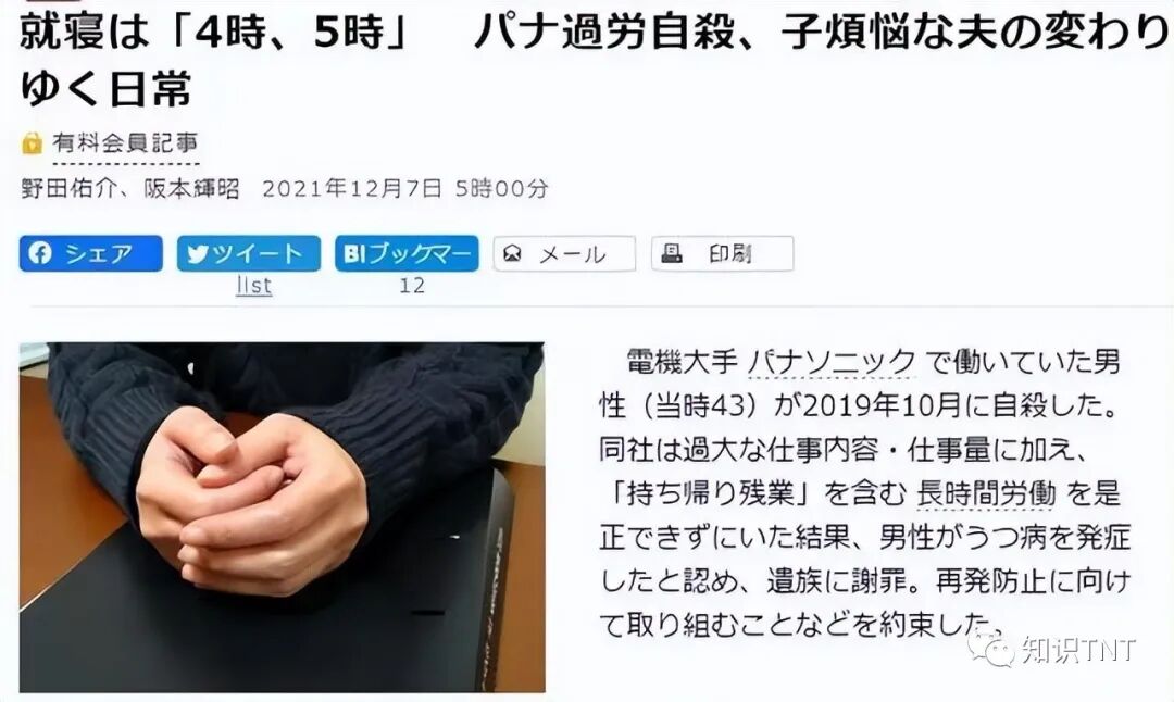 “爸爸累了,工作太多了。无法原谅松下。请向媒体讲述我的故事。”这是来自日本的一位父亲的遗言。2019年10日本松下富山工厂一名43岁男子由于受不了高强度的工作在家自杀身亡,直到两年后松下工厂才给家属作出解释和赔偿。