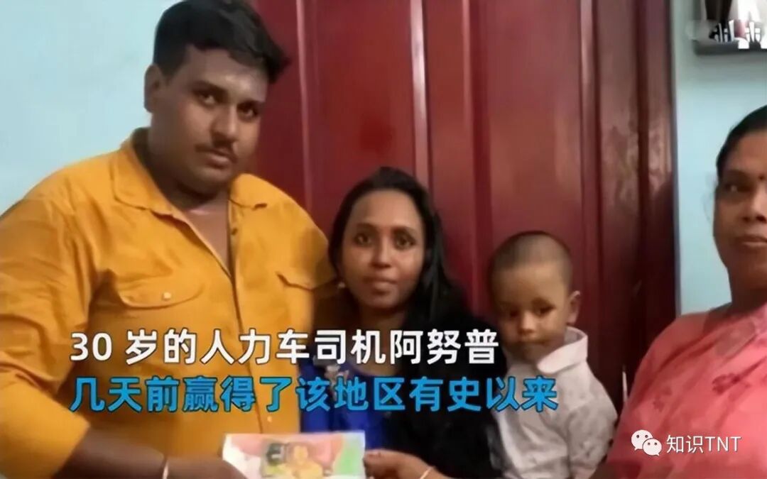 2022年9月26日,英国广播公司报道称,印度30岁的人力车夫阿努普,购买彩票后喜中头奖,赢得2.5亿卢比大奖(约2187万人民币),天降横财一夜暴富,一家人还没来得及计划如何花这笔巨额,却发现烦心事提前找上门,以致现在有家不能回。