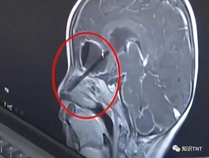 这样的情况让医生意想不到,无奈之下,医生只能紧急对航航做了脑部增强核磁共振检查。结果显示,航航的脑部出现了一个肿囊,同时,他们还发现航航的脑袋里竟然有一个长条形的阴影,医生看着这个奇怪的阴影,觉得十分不解,从医多年,他们没有碰见过这样的情况,最后,医生猜测可能是孩子鼻腔中的炎症沁到脑颅内。医生还在研究这究竟是什么,航航的病情却再次加剧,出现了频繁呕吐的症状,体温达到骇人的40摄氏度左右,已经存在生命危险。医生不敢再耽搁,当天下午就对航航紧急进行了脓肿刺穿引流,刺穿引流,就是在航航的脑袋上开一个小孔,将感染部分引出来。航航被推进手术室后,父母着急万分,将全部的希望都寄托在医生身上,幸运的是,手术非常成功,航航的病情很快得到好转,医生又做了一次核磁共振进行检查,奇怪的是,他们发现航航脑子里那个长条形的阴影并没有消失。这究竟是怎么回事?医生们百思不得其解,为此还专门开了个会,这时,一位医生突然说,会不会是有什么异物?在场的医生都不敢相信这个说法,这可是人体的大脑!并且外面有骨头包裹着,怎么可能存在异物呢?医生抱着不确定的态度,对航航的父母进行询问,父母不敢大意,将航航前几天的事回忆了一遍,这时,他们才想起来,前几天航航摔了一跤。