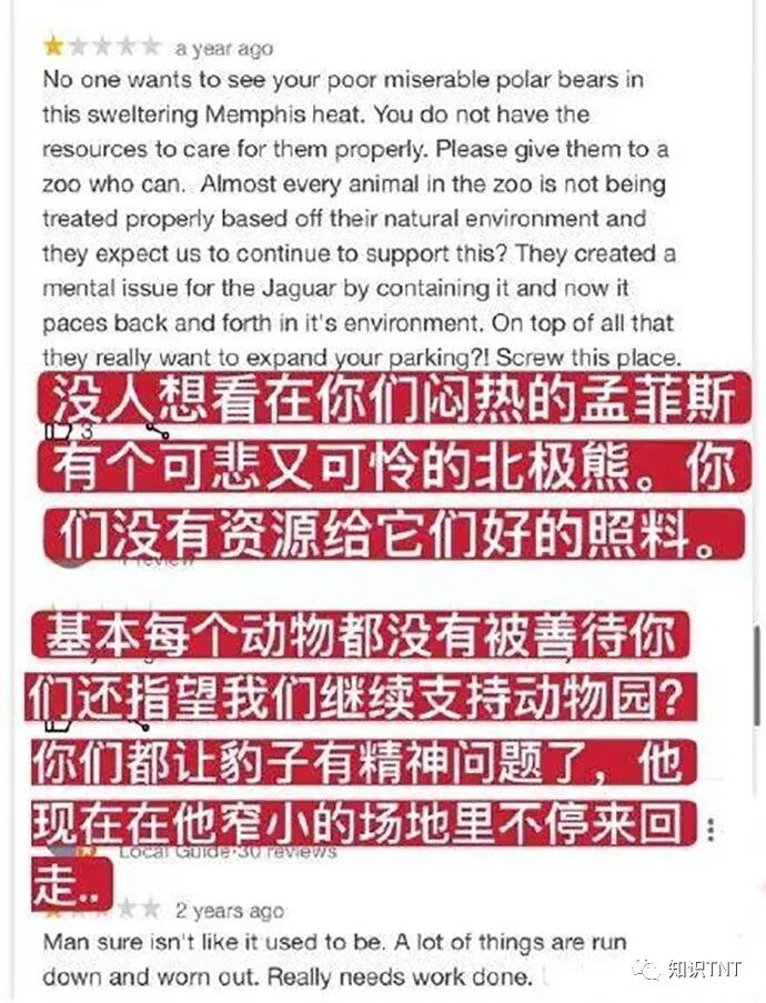 如果大熊猫的刻板行为只是个例,那么园方所说的大熊猫年老和出现皮肤病的解释或许还算合理,但其实这可能是孟菲斯动物园很多动物的常态。在美国社交媒体上,我们看到从2013年到近些年来,当地人是这样评论的。有人说:“大熊猫很瘦弱,看起来不太健康。而大型猫科动物们看上去有严重的精神分裂,一边晃着脑袋一边来回走。”显然这些动物也有不少出现了刻板行为。
