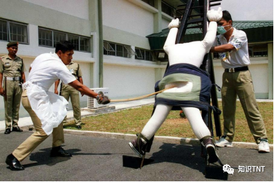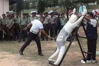 而新加坡是世界上极少数还保留鞭刑的国家之一,这是一种肉体刑法,实施鞭刑的犯人会被绑在高脚架上,身体向前呈90°弯曲,双手双脚都被固定,行刑者要用鞭子用力抽打罪犯的臀部。行刑者会在罪犯身前会放一块软垫,防止误伤腰部脊椎和大腿,顺便给犯人最后一丝尊严,算一块遮羞布。 不过鞭刑的行刑者都是都是精挑细选出来的,相当专业的,一般不存在误伤的现象。但他们长得高大强壮,甚至有可能是特种兵出身,武艺高强,因此下手的力度可想而知。 在鞭打前,他们会对人体组织生物学、力学等知识进行系统地学习,力求做更专业的鞭打执行者,用最少的鞭打面积让犯人体验最大的疼,并且开始前会使用塑料模特模拟并热身。