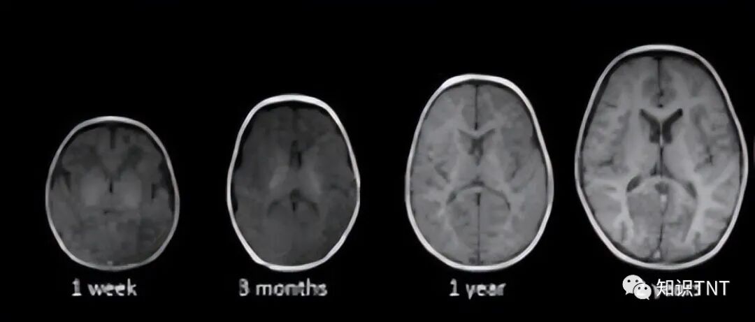 在出生6个月到3岁的这个阶段,人类幼崽的大脑发展迅速,甚至超过了四肢的成长。三岁时,人类大脑平均重1011克,在此之后仍然高速发展,六岁时可达到1280克。