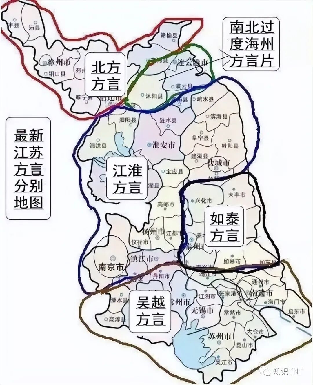 亚吴方言的概念很模糊,是很独特的江淮话,主要是泰州、南通北部和盐城南部在使用。北方方言就是传统意义上的“北方官话”,是偏向于河南方言的中原通用方言,主要在徐州、宿迁北部等地使用。