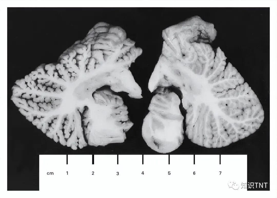 海伦的尸检结果显示,她的听觉、视觉皮层都出现了严重的胶质化。大脑皮层薄到只剩下3毫米,脑内神经元大量丢失,无论是种类还是数量,都远远不足刚出生小婴儿的大脑水平。
