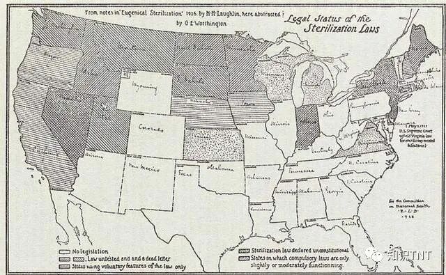 再加上美国南北战争时南方还存在着奴隶制,所以红脖子白人一直被主导美国的盎格鲁-萨克逊种族当做是“肮脏落后”“基因退化”的种群。 而南北战争后,红脖子群体的待遇非但没有提高,反而因为缺乏教育,以及喜欢生孩子,而变得更差,甚至一些上流社会的白人认为他们“天生劣等”。 为了证明这个观点,一些学者还找出了一些所谓的“历史证据”,说美国南方曾有大批英国囚犯流放,这些劣等人群都是那些囚犯的后代。 而当时美国受英国的阶级焦虑影响,移民潮又无法阻挡,“人种焦虑”就促使着他们加速落实“优生学措施”,防止以后美国的“劣等人”数量会超过“优等人”,“劣质基因”会毁掉“优质基因”,于是全社会都逐步开展激进的“绝育手术”。 1907年,美国印第安纳州最先通过了“优生学绝育法”,决定对当局所认为是“智力低下”和“血液肮脏”的人进行绝育。 而1914年,优生学家哈利·劳克林提出的,旨在组织“智力低下”的人生育后代的“优生学绝育法”,也让一些州法律瞄准了“红脖子”群体,要为了保护“美国种族”的“纯洁性”,对他们认定为“有犯罪倾向”、“癫痫”、“智力低下”、“低能”、“懒惰”的人进行强制绝育。 1924年,红脖子群体最多的弗吉尼亚州也通过了“优生绝育法案”,这项法案导致弗吉尼亚州至少有2万人被强制绝育,占当时美国全部强制绝育人数的1/3(全美有6.5万人被强制绝育)。 而这些人中,也许真的有一部分人的确患有精神病,或者有犯罪行为,但许多人根本没有做过任何违法的事,甚至还是受害者,也同样遭到了强制绝育。
