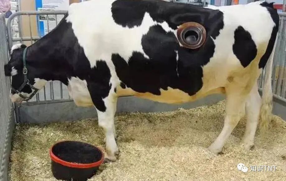 牛在有草吃时,它们会一直吃,直到将草吃完或者将瘤胃储存满,没草吃的时候,它们会将瘤胃中储存的草料吐出来,然后嚼着吃,这一行为叫做“反刍”。可当牛吃进去什么异物或者被感染时,储存草料的瘤胃就会出现消化问题,牛自然也就会生病,可人们无法判断牛到底哪里不适,要请专业兽医来检查,而且检查起来很麻烦。于是美国人就脑洞大开地想,要是在牛身上开一个洞,能直接看到瘤胃里的情况,当出现消化问题时,可以直接将异物掏出来,岂不就解决了很大一个麻烦。