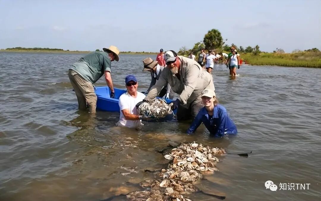 当生蚝壳多了之后,生蚝幼体不仅有了可以生长的地方,而且还会吸引其他野生生蚝扎堆,这样一来,生蚝的恢复速度也能变得更快。野生生蚝多起来,水质就会变得更好,水质更好,野生生蚝就会越多,这样重新形成良性循环的同时,生蚝礁也减少了飓风的损失,可谓一举多得。