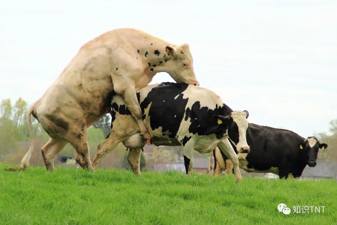 从交配行为上看,母牛和母马拥有相同的习惯。它们都会用尿液来吸引异性,当着理想型的面抬起尾巴排尿,同时散发一种能唤起交配欲望的信息素。如果两只看对眼了就会用自己的头部和尾巴在对方身上蹭。