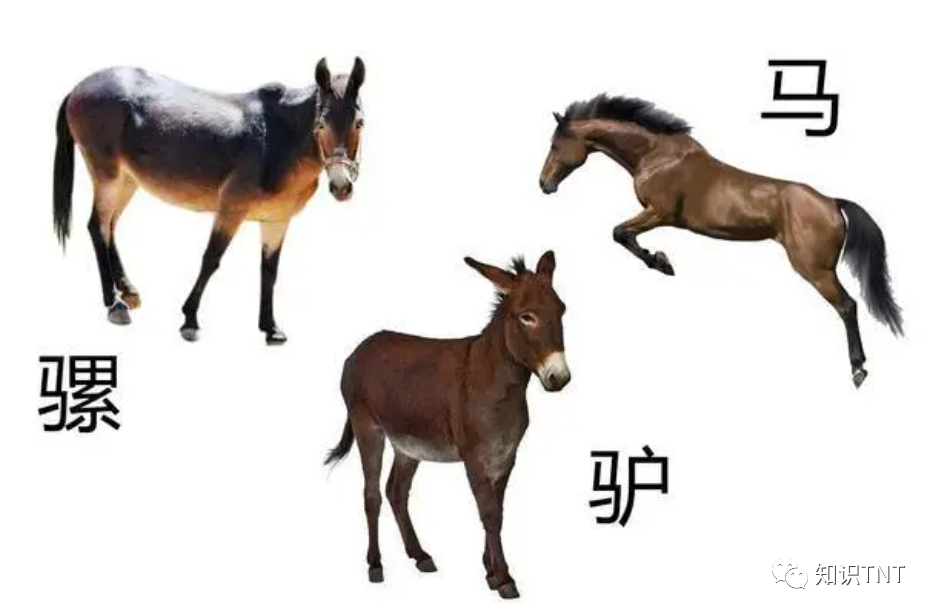 马体格高大、奔跑如风,但驮不了重物;驴子吃苦耐劳,能负重前行,但速度上跑不快。有人就想出了如果让马和驴杂交配种,是不是能取二者之长处,弥补各自缺点,生出一个更好使的品种。一番杂交实验后,骡子这种生物就诞生了。