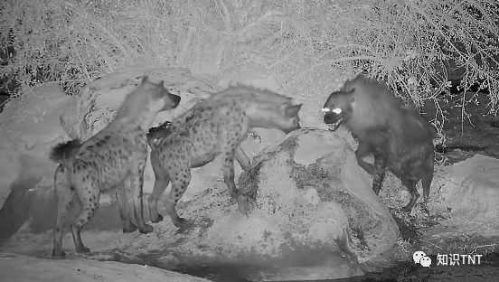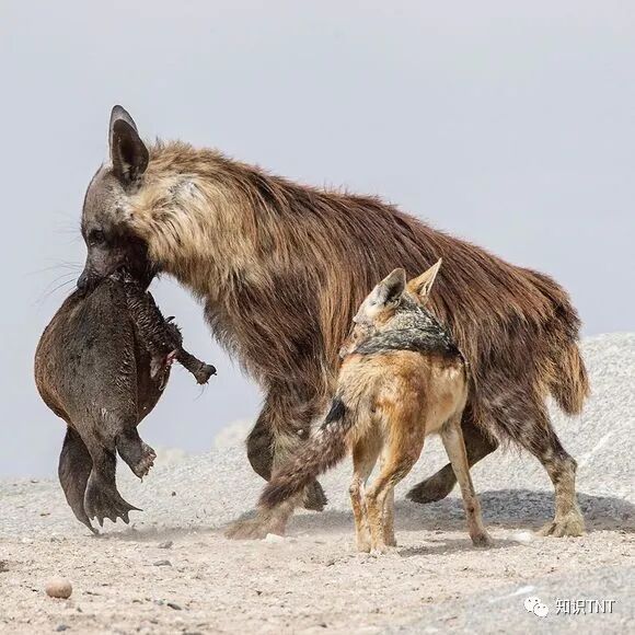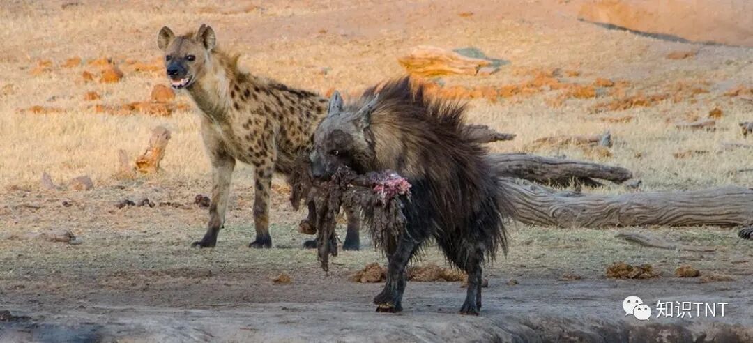 当棕鬣狗要抢食其他捕食者的猎物时,通常会让自己的毛发炸立,起到威慑力的用时,还能让对方误以为棕鬣狗的体型更大,不得不主动退让。