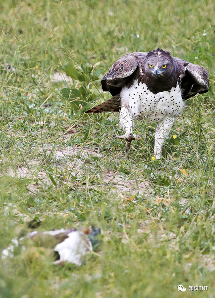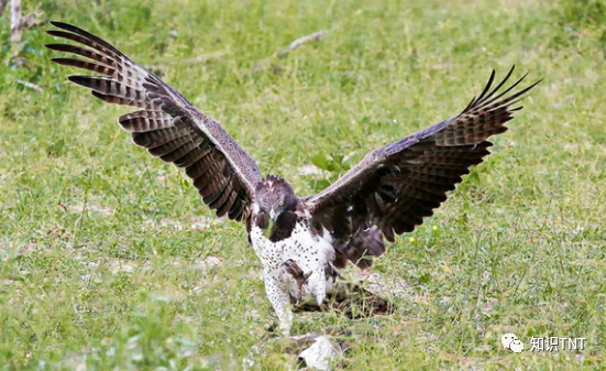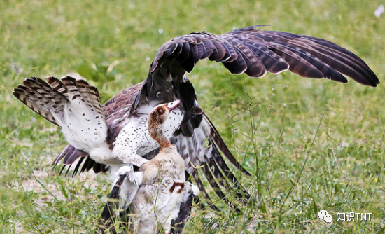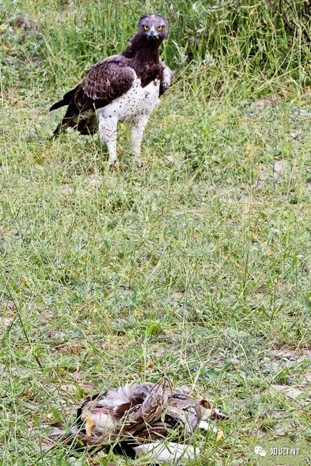 并且猛雕的爪子握力极强,可以将与自己体重相近的猎物爪飞到空中。而在面对几十斤的猎物时,它们也可以用爪子将猎物牢牢按住,再用鹰啄将猎物杀死。此外,猛雕还是一种机会主义捕食者,当它们发现其他捕食者捕食到猎物,并且捕食者的实力不如自己时,会直接俯冲到地面,正面抢夺捕食者的猎物。比如文中开头提到的非洲岩莽,体型很小,很容易被猛雕的利爪或是鹰啄直接“爆头”,才不得不退走。