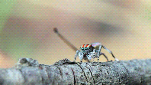 再说到狡蛛中的雄性蜘蛛,它们一生只结一次网,并将它献给了生物最伟大的事业——繁衍后代。雄蛛们平时不结网,在交配期,它们会先跳到雌蛛的网上,拨动蛛丝并“跳舞”来吸引雌性的注意,甚至还能像孔雀开屏一样妖娆。