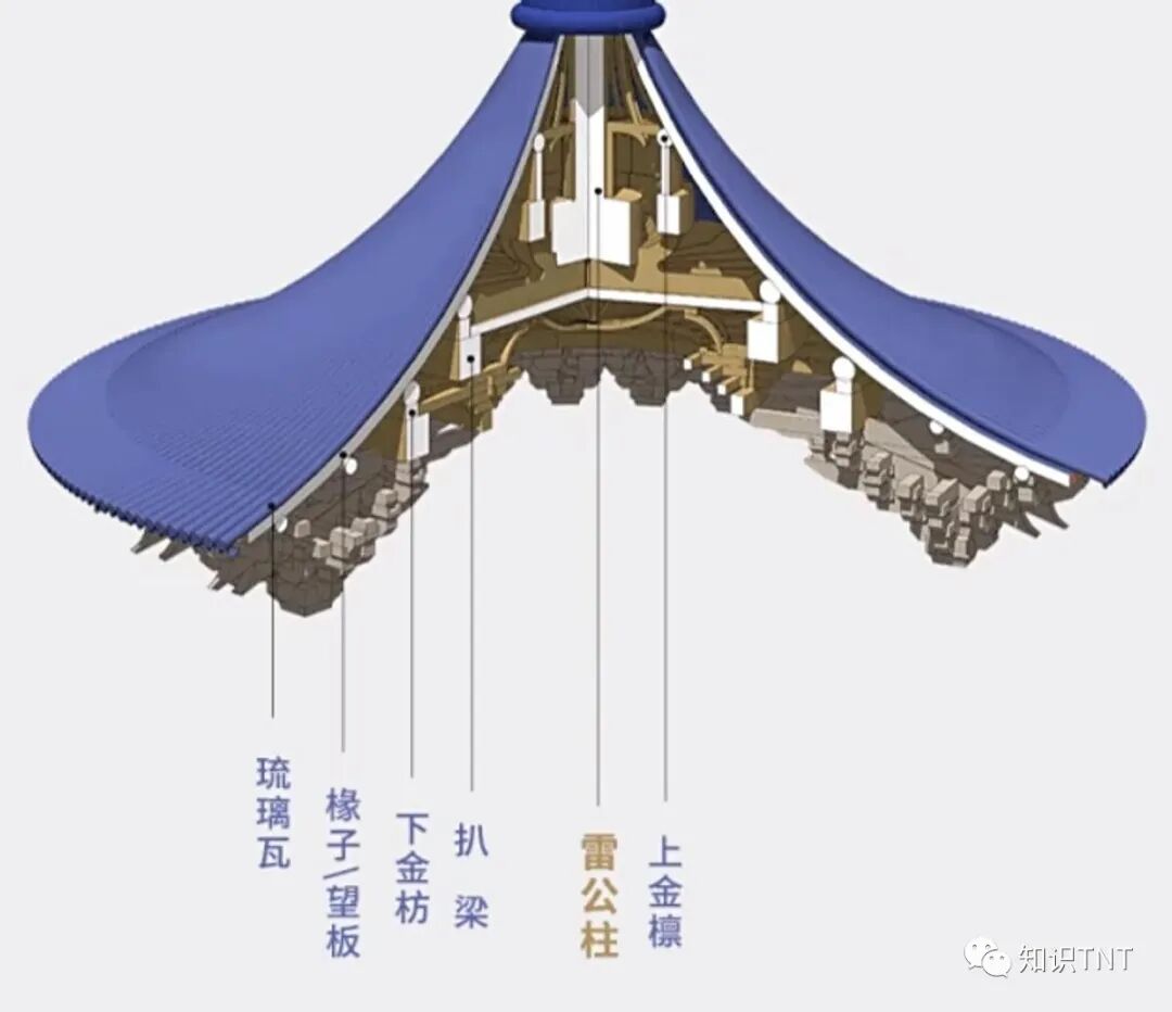 雷公柱应用的建筑中最为出名的就是北京天坛的祈年殿了。祈年殿的雷公柱在殿中“C位”——整座大殿上方宝顶的正中间,向上沟通所谓的“天神旨意”,向下传达天帝与皇帝的对话。说不准在古时看来,雷电会不会损害祈年殿正是天神对人间帝王功绩满意与否的象征呢。