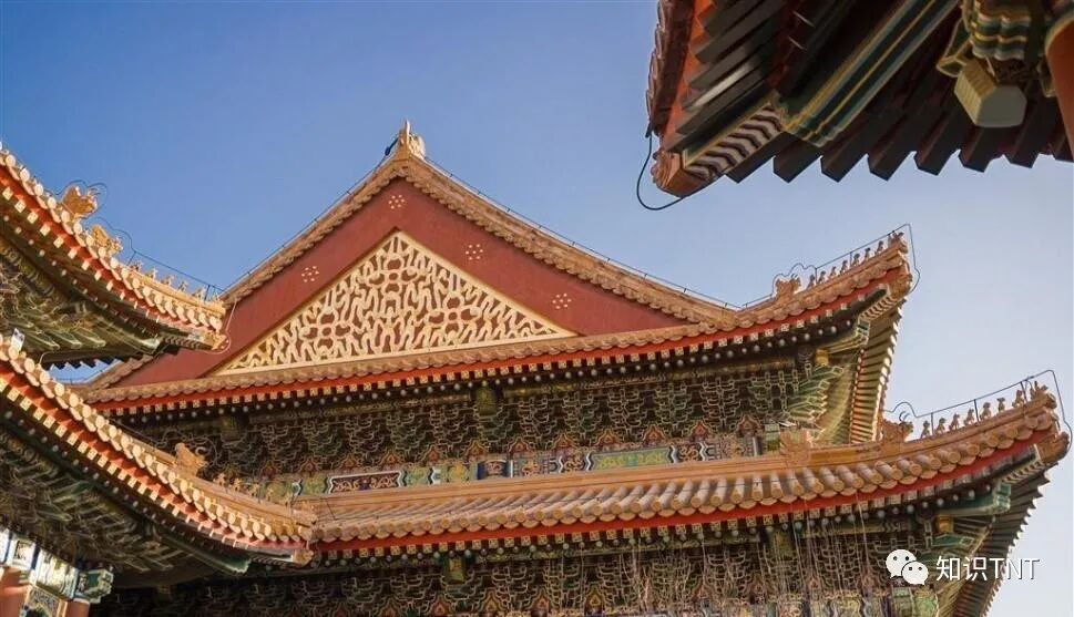 除了鸱吻造型之外,工匠们还匠心独具地将其改造运用在宫殿的宝顶尖端上——避雷装置藏在宝顶和屋架内,位于最高点可以引导雷电,通过内里装置把电流引向地面,从外观上看还有着“衔顶明珠”的美好寓意。