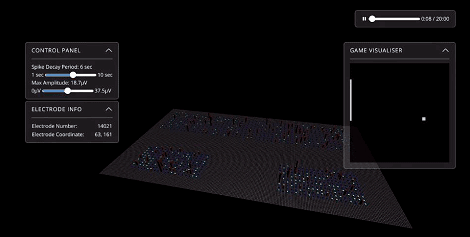 然后研究团队给“盘中之脑”规划了两个区域,左边的区域活跃则对应向左操作,右边的区域活跃则对应向右操作。这样研究团队就实现了让这个小小的大脑操纵乒乓球游戏“Pang”里面的球拍左右移动。