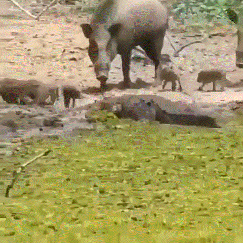 一条巨大的沼泽鳄突然从水中窜出,直接冲到了岸边喝水的野猪群中,却惨遭几头野猪暴打,被野猪的“死亡冲撞”直接掀翻,难道上岸的鳄鱼真敌不过野猪?
