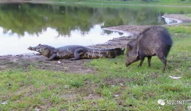 会瞬间向远处逃去,因此就算是在河边喝水,它们只要保持警惕性,也能够躲避鳄鱼偷袭。而且在陆地上,野猪的奔跑时速可以达到50-60km/h,而沼泽鳄在陆地上行动非常缓慢,根本追不上野猪,因此偶尔能看见在岸边,野猪挑衅沼泽鳄的场景,野猪就站在鳄鱼面前瞎溜达,鳄鱼也无动于衷。