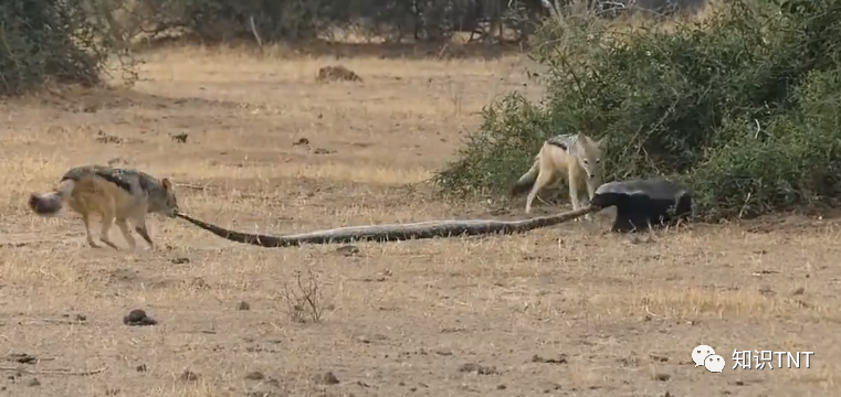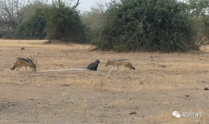 平头哥(蜜獾)捕食蟒蛇不幸翻车,反被蟒蛇牢牢缠住,眼见就要被蟒蛇活活勒死,两只胡狼突然加入战局,成功救下平头哥,但平头哥之后的做法太不地道了。