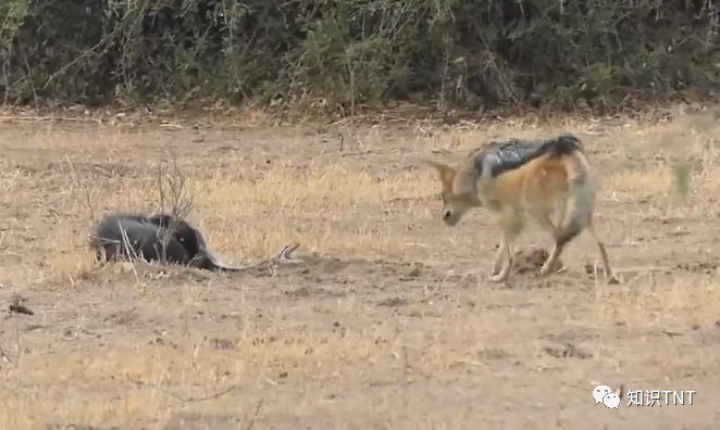 如果大型肉食动物不允许它们小偷小摸的话,它们还会故意挑起事端。比如狮子在捕获一头猎物后,不肯给黑背胡狼蹭吃蹭喝的话,它们会发起一种奇怪的叫声,吸引周围鬣狗的注意力,让鬣狗来抢食狮子的猎物,它们则趁乱偷吃猎物。