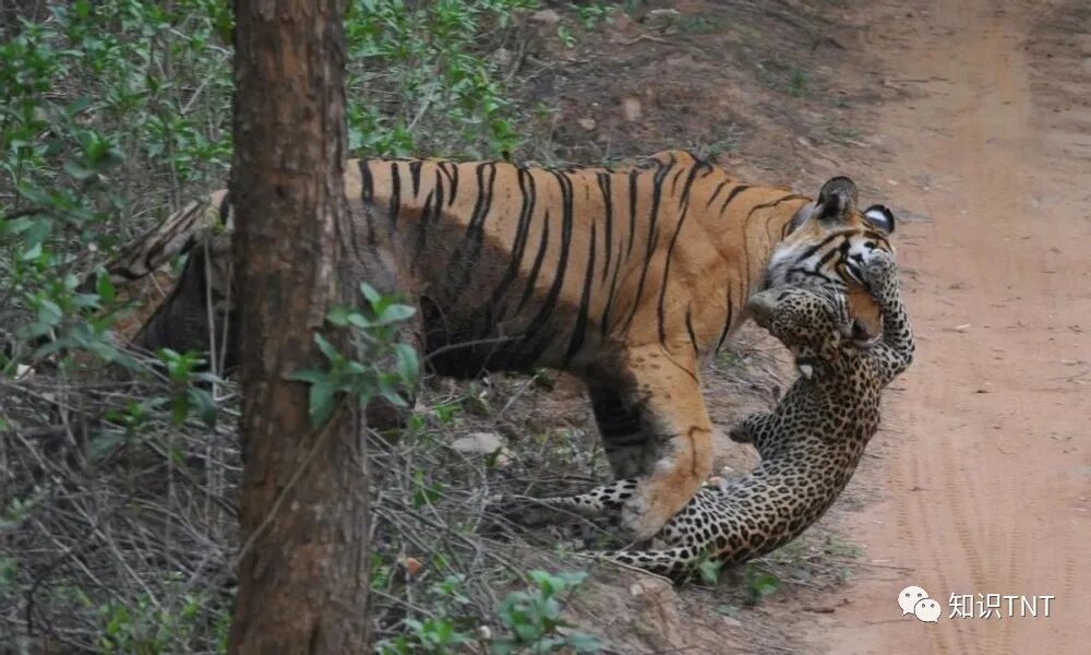 在现实情况里,孟加拉虎和成年公象不会直接起冲突。它们一个行动灵活、杀伤力爆表,一个体型庞大、难以近身,如果真上演一场机械斗兽,孟加拉虎无法打败一头成年公象。因此它只会对幼象、亚成年象或者母象下手。印度北阿坎德邦科贝国家公园,5年内有21只大象被孟加拉虎猎杀,这些猎杀记录基本都是由成年孟加拉虎单独完成。面对体型接近自己十倍的亚成年象,孟加拉虎依然可以使出行云流水的猎杀技巧。它们会依靠发达的跳跃能力跳到大象的背上,然后扑到大象的脖子上,死死咬住不松口。即便大象挣扎着转动都很难让它松口。大象的皮肤虽然厚实,但是无法抵御孟加拉虎锋利的爪牙和强大的咬合力。在很多被杀死的大象身上,研究员都发现了极深的抓痕,这些抓痕布满大象的背、肩,它们也因为失血过多而亡。