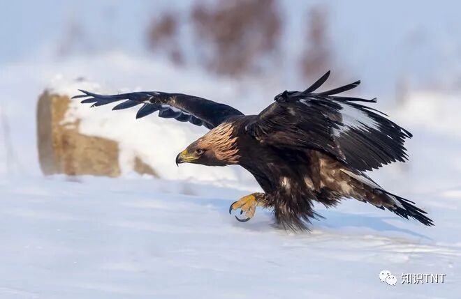 不过宽阔的翅膀也带来了一些障碍,金雕在捕捉猎物时转弯很不方便。比起野狼,行动灵活的野兔反而更有捕捉难度。另外,金雕捕杀中大型猎物时,是无法将整个猎物都带走的,它的翅膀无法承载超过6-7千克的猎物。野狼的体长可达1.5米,体重平均为20-30千克,已经远远超过了金雕的承载力,金雕会当场杀死野狼,并用喙足撕咬分割猎物尸体,然后当场吃掉一部分,再把另一部分带走。野狼虽然在猎食时凶猛残忍,但是面对顶级捕食者“快、准、狠”地俯冲攻击,它们没有狮虎一般强壮庞大的身躯来抵抗,也没有狼群的团队配合,任何的反抗都是无力的。#头条创作挑战赛##我要上微头条##动物##金雕##猛禽#