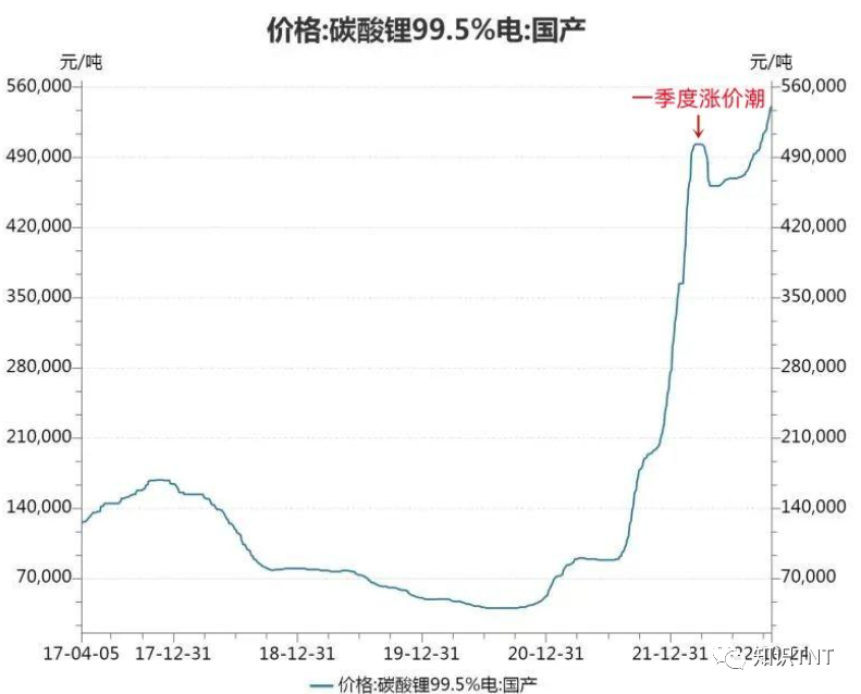 据电动汽车信息提供商统计,锂价过去一年狂飙近500%。国内锂电池受价格波动也来了一波上涨,电池级碳酸锂的最新报价为49.65万元/吨,2022年已上涨80%。