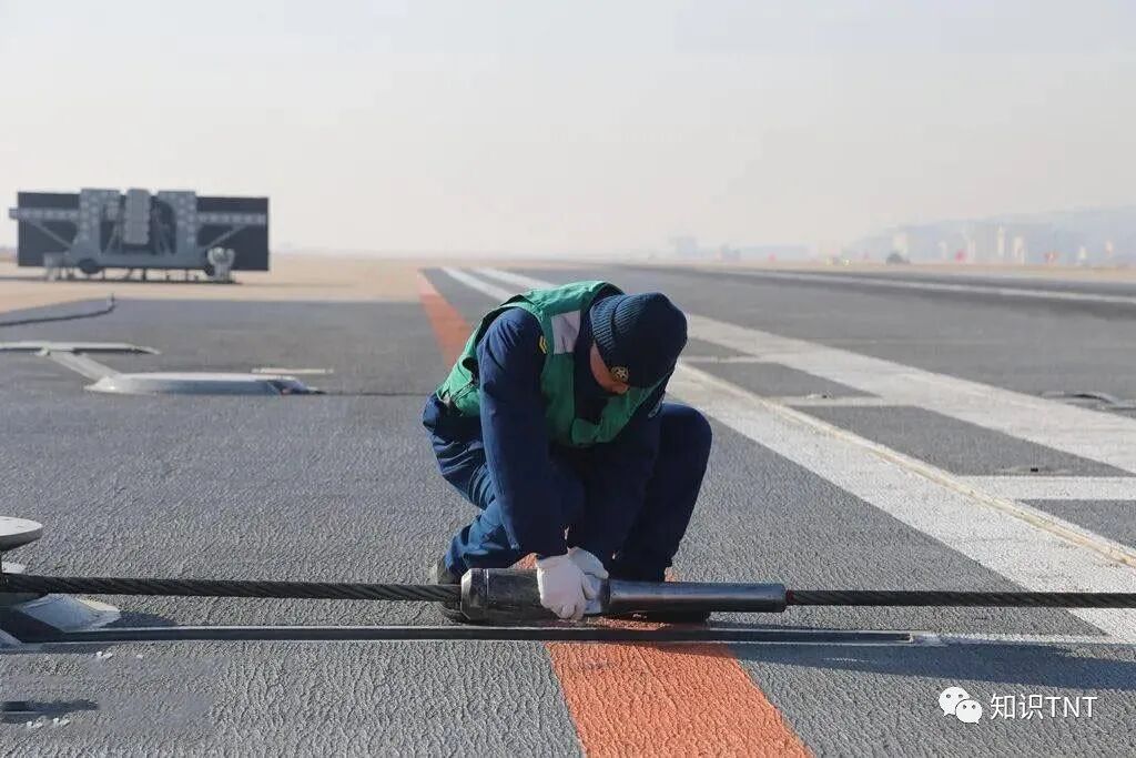 在飞机滑翔降落时,安全员会提前将阻拦索放出,飞行员只要掌握好下降角度,让机尾拦阻钩勾住一条阻拦索,在阻拦索的帮助下,飞机就会在50米内迅速停下来。