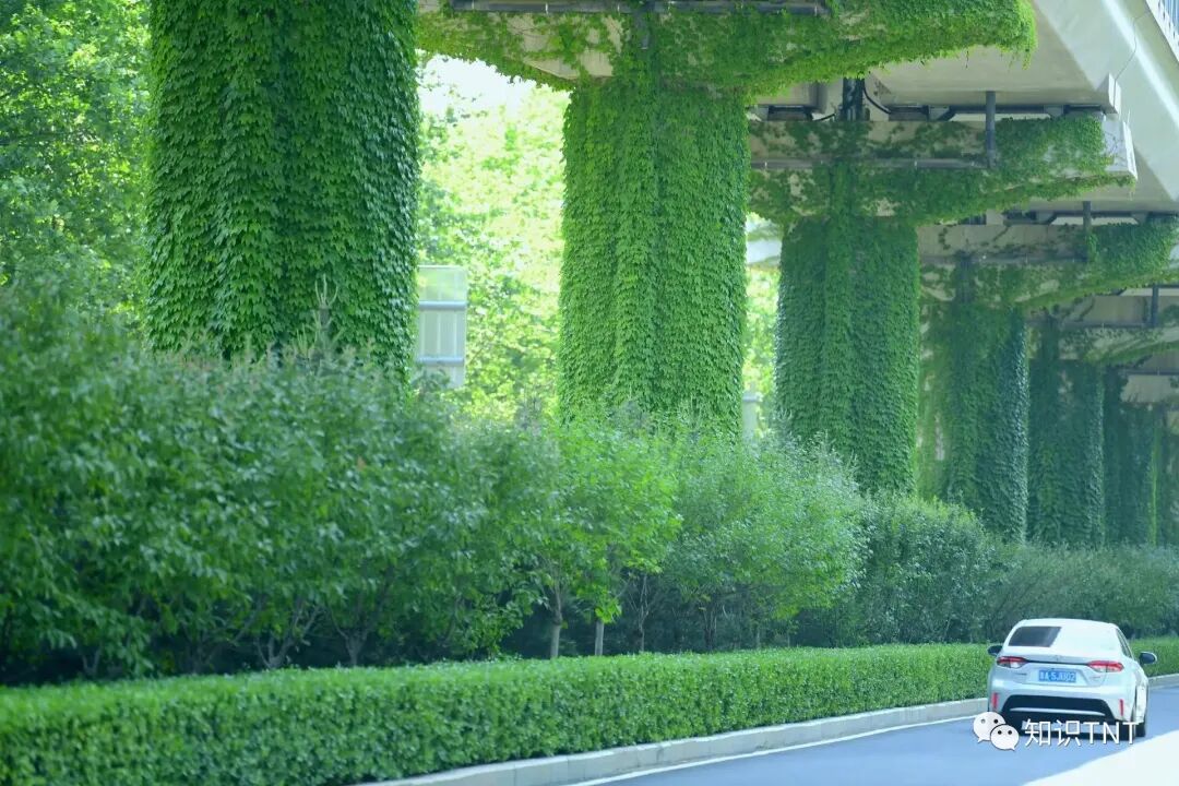 其实种植爬山虎,反而有利于保护高架桥的安全,因为爬山虎生长能力强,所以很快就能将柱子大面积覆盖掉,从而避免柱子受到阳光直射,天然遮阴。 前面说了,爬山虎喜欢潮湿的地方,而水泥钢筋做的柱子,虽然坚固,但对外界温度较为敏感,十分吸热,有些城市的高架桥柱子,在夏天甚至能身高到60多度,而爬山虎吸附潮湿的能力可以避免柱子因为气温过高而热胀冷缩,也就降低了柱子产生裂缝的可能性。 而且,有了这么一层天然保护罩,也能在一定程度上减少下雨时雨水对高架桥的冲刷,宛如一把雨伞,毕竟雨水的PH植偏酸,如果长期直接冲刷高架桥,对高架桥不好,有植被遮挡,可以延长高架桥的使用寿命。 而且爬山虎作为一种植物,可以吸收过往车辆产生的噪音以及灰尘,在一定程度上减轻噪音污染和空气污染。