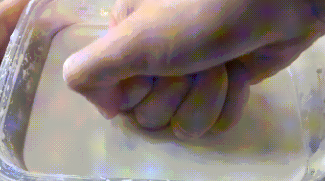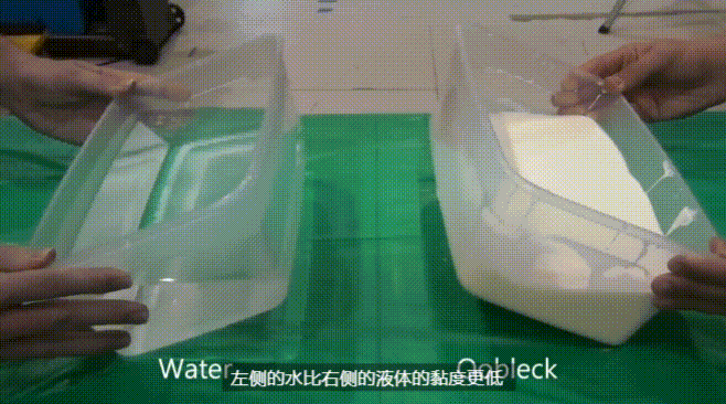 什么是非牛顿流体呢?根据百度百科的解释,这是指不满足牛顿粘性实验定律的物体。 常见的流体,比如水、石油等,在温度和气压等外界条件都不会变化的情况下,液体粘度不会随着剪切的速率变化而变化,也就是说,不管你给水或者石油施加一个多大的力,它都不会“变质”。 但给非牛顿流体施加不同的力,流体就会在不同力度下呈现出固体或者液体的特质。 而非牛顿流体又分为剪切增稠流体和剪切变稀流体,能打开椰子的口香糖就属于剪切增稠流体。 不妨做个实验,用玉米淀粉和水混合,就可以形成一种水淀粉,这种水淀粉就是一种剪切增稠流体。 当你握拳用力打这种流体,它不会像水一样四散,反而会非常坚硬,仿佛刀枪不入,手根本进不去。 但你换成手掌轻轻地按下去,反而能轻松进入流体中,所以这种流体也被称为“吃软不吃硬”、“遇强则强”的东西。