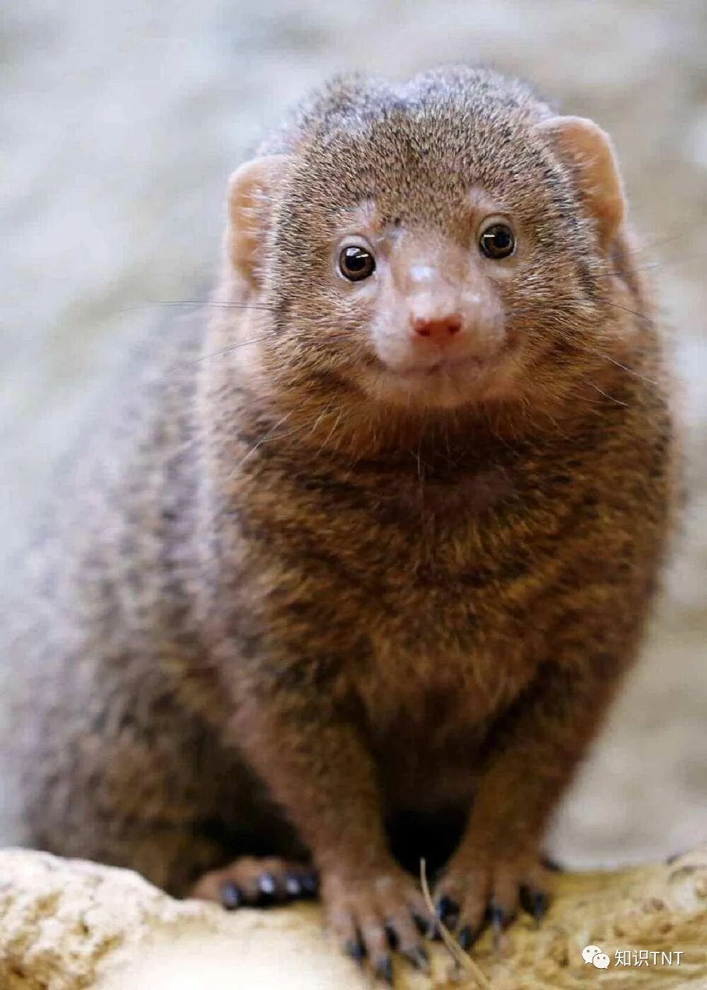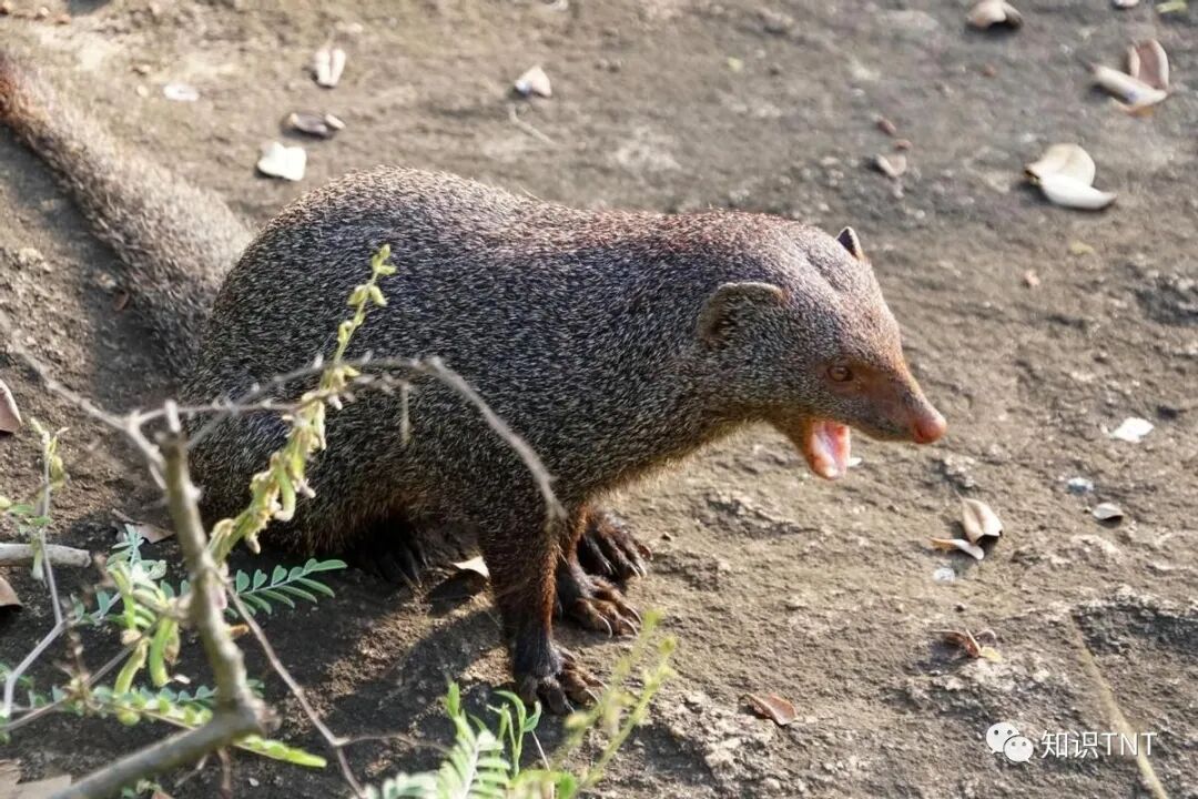 蛇獴俗称蒙哥,它的外表并不出众,皮毛呈黄褐色或铁灰色,比它的獴科亲戚来说,它的皮毛要更灰白更硬更粗糙。而蛇獴的体型上也比较小巧玲珑,体长只有36到45厘米,但它的尾巴非常长,和它的身体一个长度。