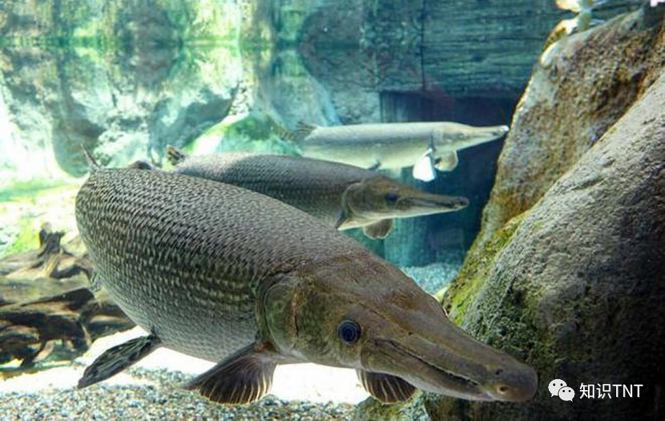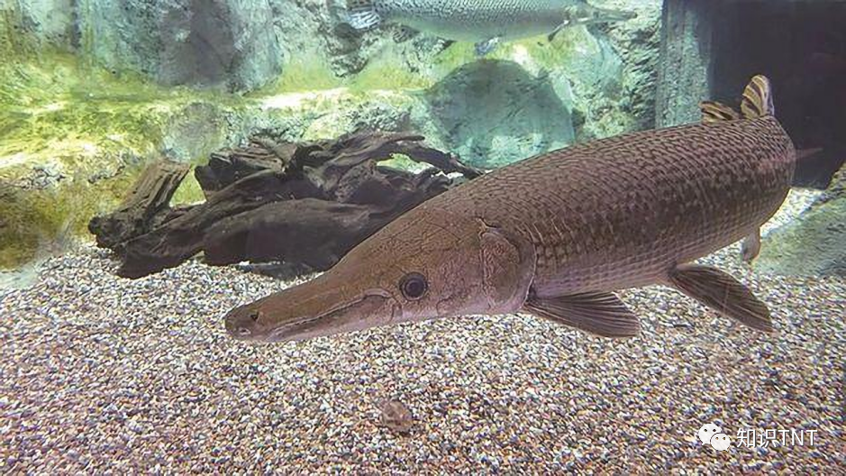 首先,从它的外表来说,体型比一般的鱼大,最长的鳄雀鳝可以长到三米,它有着像鳄鱼一样的长长的短吻和锋利的牙齿,所以叫做鳄雀鳝。
