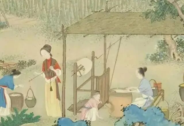 从宋代传世绘画看,抹胸的颜色多以鲜艳的红色、粉色与淡雅的白色为主。《纺车图》中的老妪形象着红色抹胸,《荷亭婴戏图》中仕女着浅黄色抹胸,《歌乐图》中女伎着素色抹胸,可以看出抹胸颜色多与外衣的颜色搭配穿着。