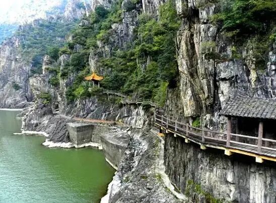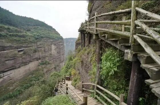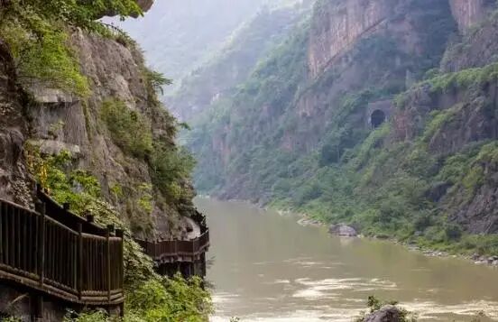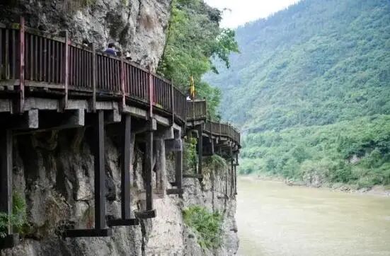 自草凉驿至此六十里,皆缘故道,“川东岸依山傍水,架木为桥。下临不测名曰栈阪,人行其上,哄然有声,每值山转水折之处,尤为陡峻,虽临江一面半设木栏,而残朽不时眩目惕心,令人毛发俱竦。”