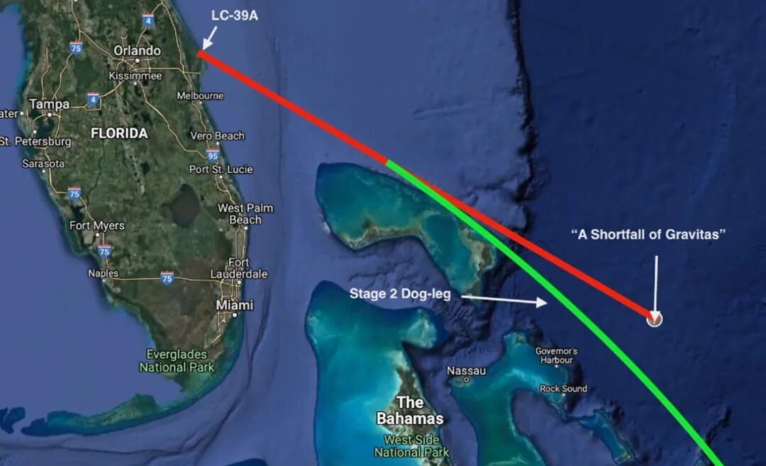 从卡纳维拉尔角向南部和东南部发射的路径要求火箭执行转弯或“狗腿”动作,利用它们的一些燃料避开陆地和居民区周围飞行。这将减少SpaceX 公司在一次任务中发射的星链卫星数量。