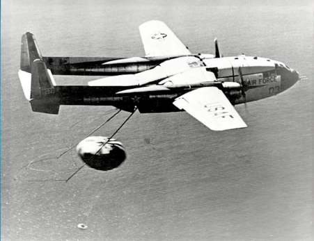 在20世纪60年代,美国在运输机后面拖一条长钩,