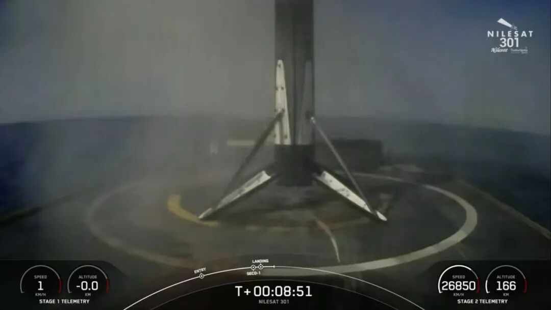 猎鹰九号的二级火箭将点火两次。第一次进入一个临时的停泊轨道;第二次点火将Nilesat 301送入超GTO转移轨道。星箭分离发生在发射后的33分钟。
