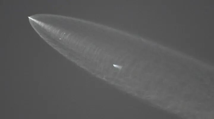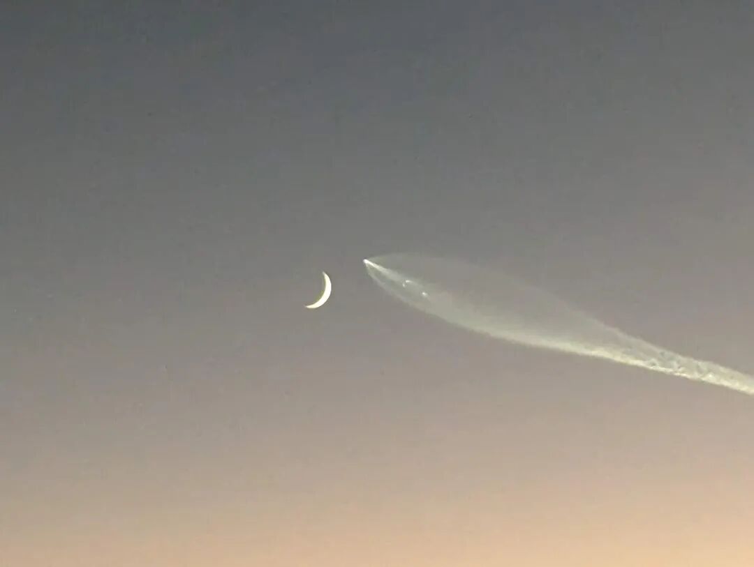 在美国西南部和墨西哥,人们可以看到日落中火箭爬向太空,夕阳的最后一缕余晖照亮了猎鹰9号在太空中不断扩大的尾焰。从遥远的西德克萨斯州分享到社交媒体上的照片显示,火箭像彗星一样的尾气轨迹照亮了地平线上的夜空。