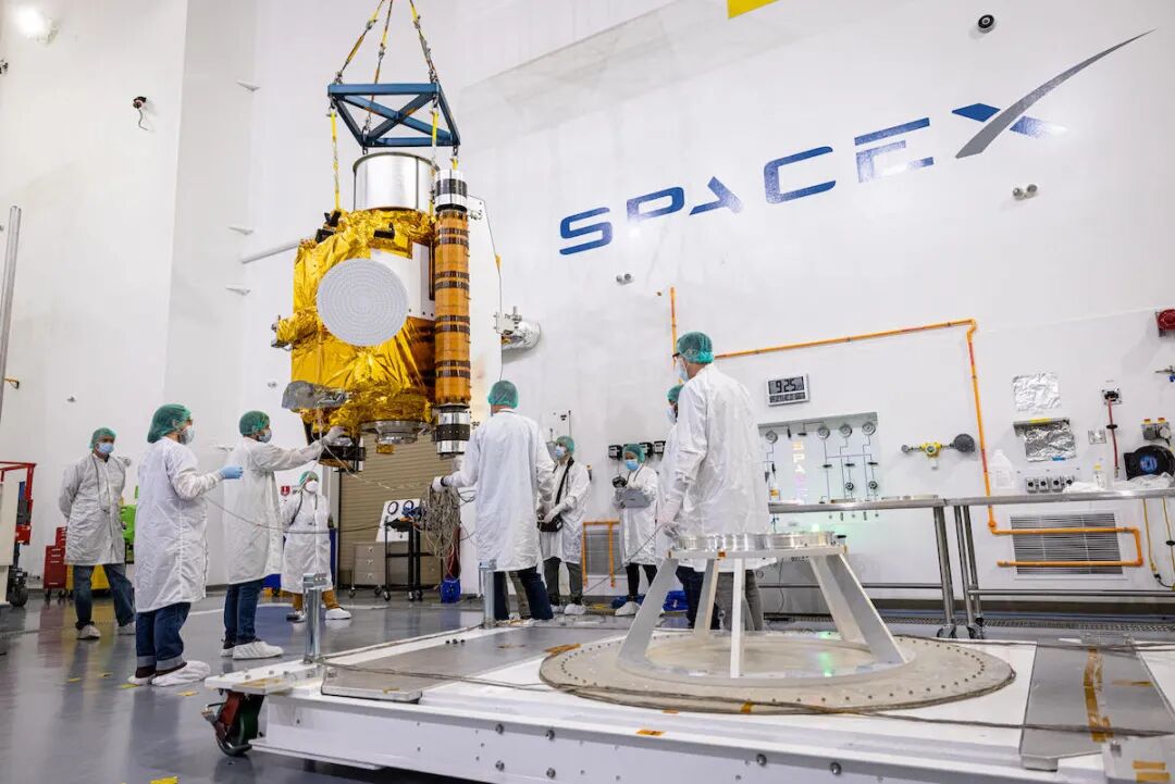 美国宇航局的双小行星重定向测试,DART航天器发射前在太空探索技术公司位于范登堡空军基地的设施处理