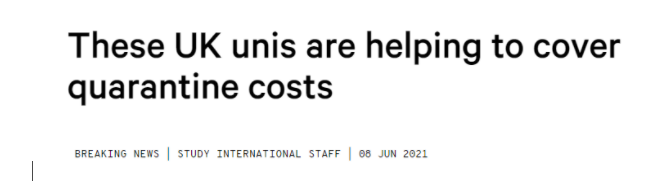 目前,已有几所英国大学通过部分或全额承担隔离费用来帮助入境的国际学生。