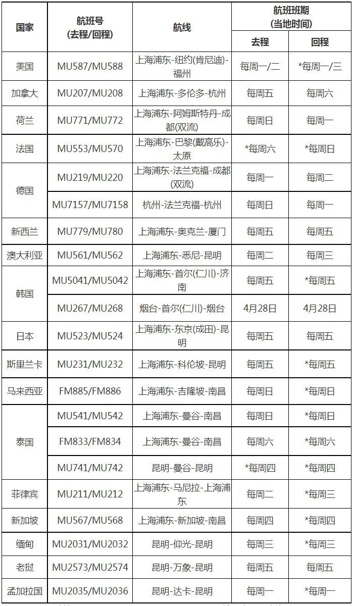 *4月24日曼谷-南昌MU542航班载客执行,其余航班入境上海浦东不载客只载货。