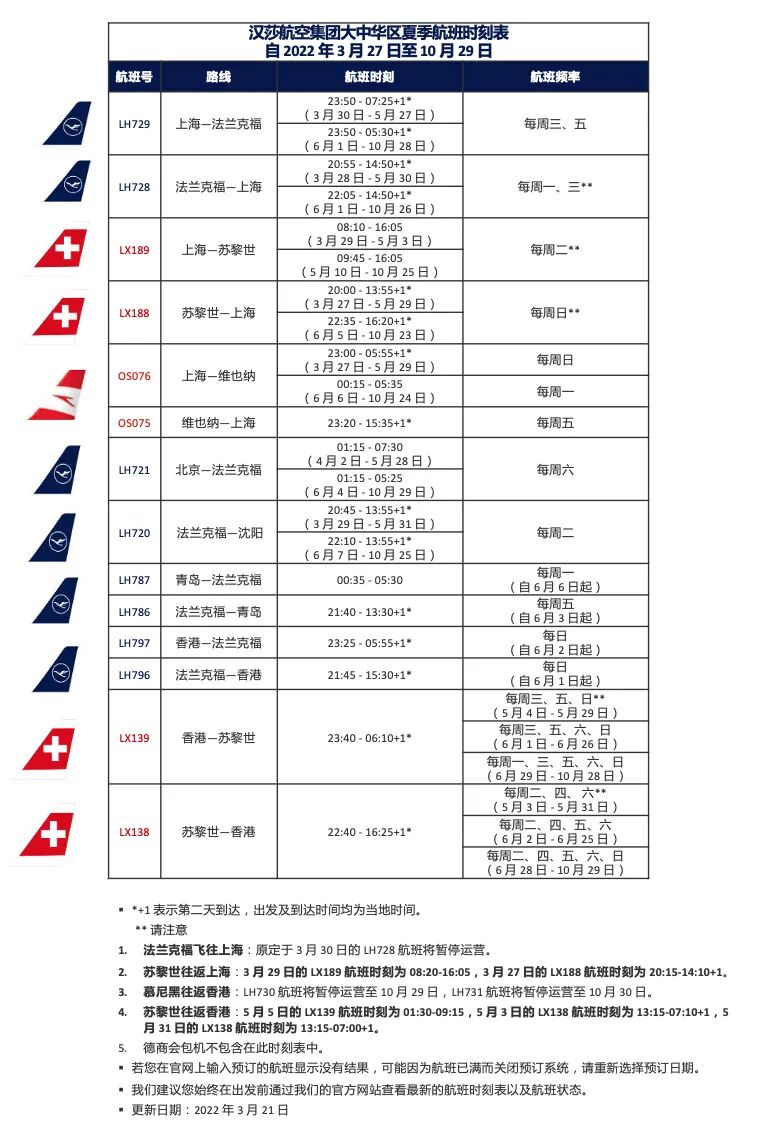 汉莎航空更新了夏季航班时刻,部分航班的飞行时长、起降时间以及航班频次都有所调整。另外相关航班动态有如下调整: