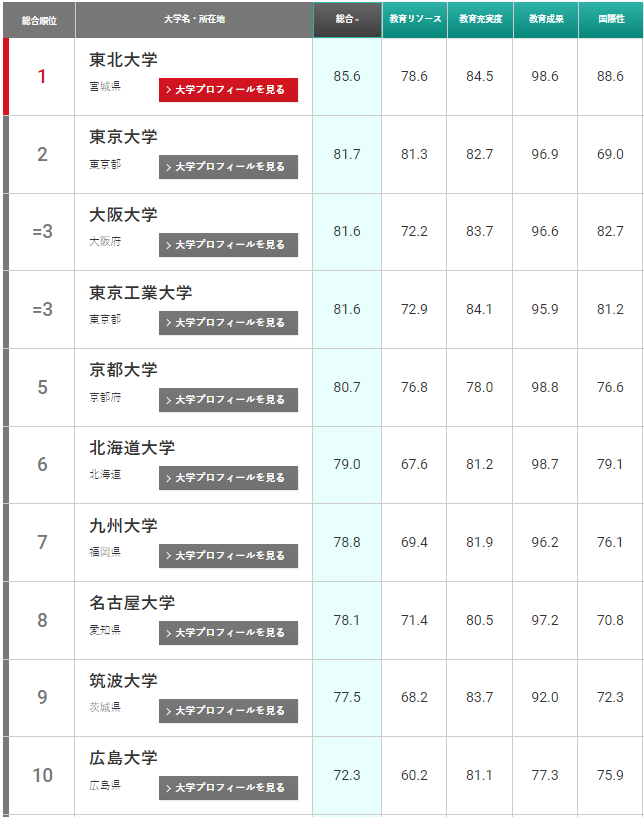 本次榜单 TOP 10 无一例外,都是日本的国公立大学,除了上文提到的 4 所院校: