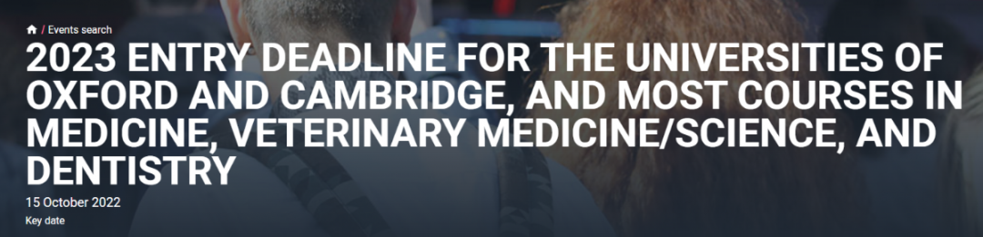 10月15日,牛津、剑桥大学本科专业,以及大部分的医药、兽医、牙医专业截止申请。学生需要在10月15日18:00前(英国时间)提交相关申请。