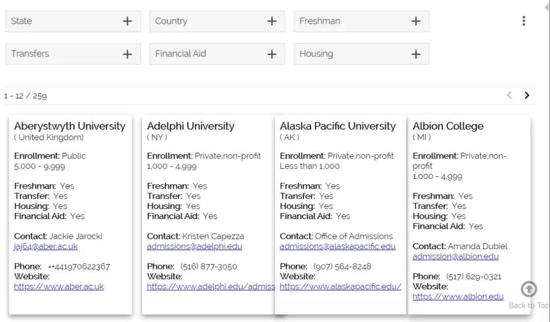 研究及资助中心主任 Melissa E. Clinedst 说:“NACAC大学空缺位更新为今年秋季入学还没有找到合适大学的学生提供了选择和保证。由于疫情对申请和招生造成的负面影响,许多很好的院校出现招生空缺,目前还在积极寻找秋季入学的学生。”