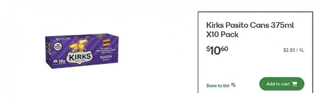 根据 Frugl Grocery 的数据,10 罐装的 Kirks 软饮价格上涨了 70%,而 Nescafe & Moccona 速溶咖啡价格上涨了 50%-74%。