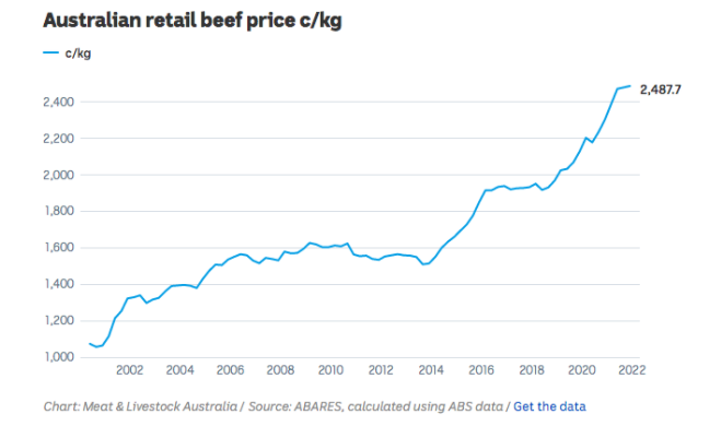 在肉类方面,牛肉粒的价格飙升了 22%,而牛肉糜的价格上涨了 14%。