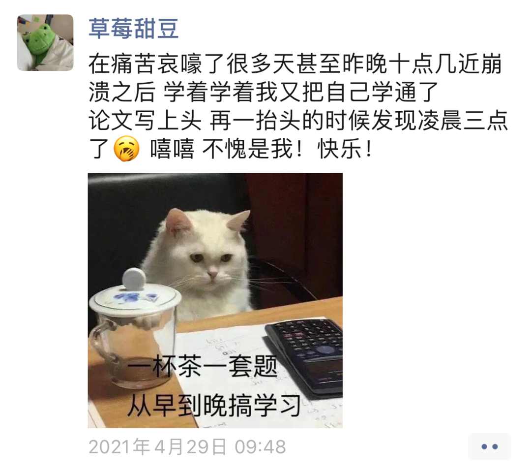 草莓甜豆:网课体验感真的不太好!早上提前五分钟睁眼,刷个牙打开电脑就可以开始上课,甚至都不用离开床… 这其实不太利于养成好的生活习惯或者说更专注地学习。