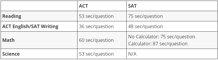 美国知名考试培训机构 Applerouth 曾总结过 SAT 和 ACT 在时间上的差异,具体表现在: